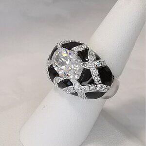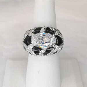 NWT exquisite black enamel dome ring with 5ct cz size 8