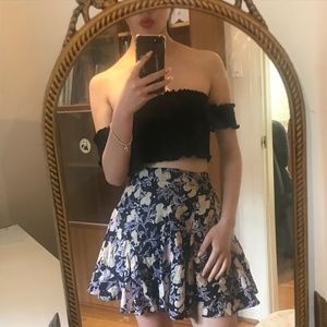 Fun and floral mini skirt featuring pleat detail for added shape in a high-rise silhouette.