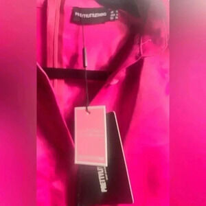 NWT prettylittlething fuschia bonded satin shirt day 2 nite trendy playsuit 8