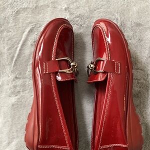 Stunning red leather flats that look like a cross between a driving moc and a loafer and super comfy