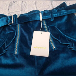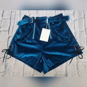 NWT self-portrait Peacock Blue Double Zip Shorts Velvet Belt Size 2 US / 6 UK