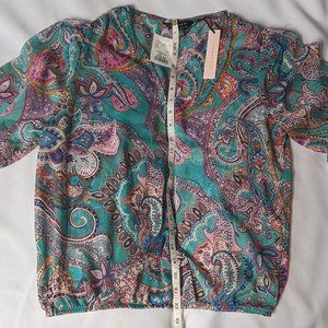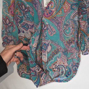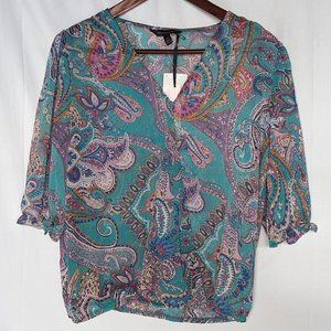 🌟NWT sheer second-layer paisley v-neck short-sleeve top medium Tamara H.
