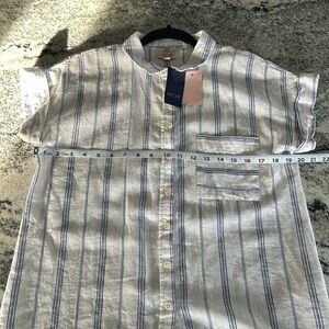 NWT- size M Per Se 55% Linen\45% Cotton Top Is blue and white and has silver sparkle in the blue. Hard to get a good picture of it.