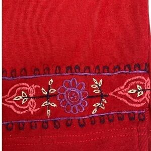 Great vintage 90’s dead stock NWT 3/4 sleeve top in a size small. Red v-neck cut out top with embroidered boho flower details along the bottom hem. Bust measures about 32”. 100% cotton so does have some stretch. Sleeves are about 15” long. Length of the top from the shoulder is 23”