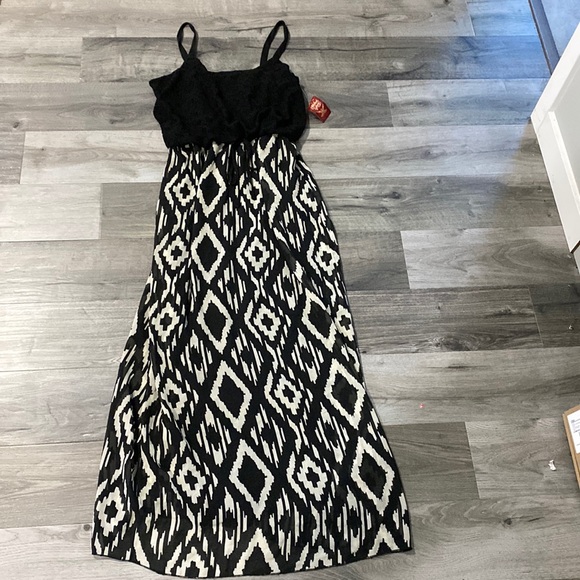 NWT women juniors size large L black lace top diamond bottom maxi dress