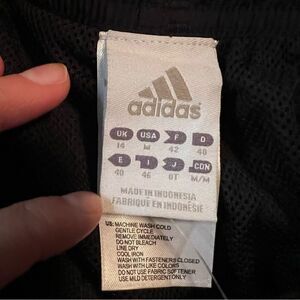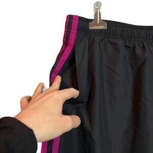 Enhance your athletic wardrobe with these NWT Adidas Regular Fit Wind Pants. This brand new pair comes with the original tags, ensuring its unworn and pristine condition. The classic track pant design is complemented by a stylish black and pink color combination, adding a touch of flair to your sporty look. The elastic waistband with a drawstring provides a comfortable and adjustable fit. Zippers on the bottom enhance the functionality and style of these pants. Elevate your sportswear collection with these versatile and fashionable Adidas wind pants.