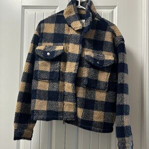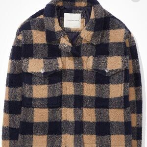 NWT American Eagle Checkered Zip-Up Sherpa Shacket