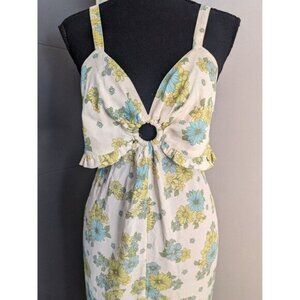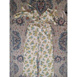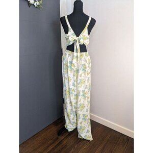 NWT Asos Miss Selfridge Cutout Strappy Wide Leg Jumpsuit in Green Retro Floral - 14
