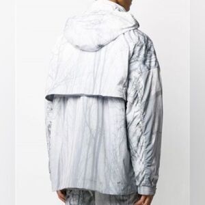 White x Fila Olle sports jacket from Astrid Andersen featuring a high standing collar, a zip and press stud fastening, a photographic print, a tonal gradient effect, a drawstring hood, long sleeves, press stud cuffs, side flap pockets and a straight fit. This item belongs to the Fields collection.
