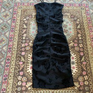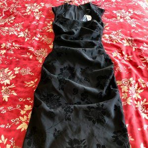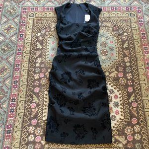 *NWT*Black Sheath Dress with Floral Velvet Detailing - Made in Canada - Size XXS