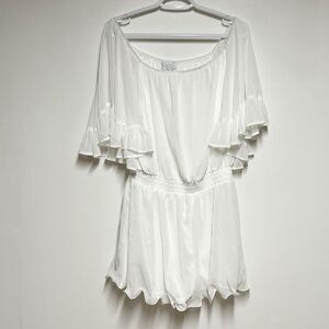NWT Endless Rose Definitely Demure Off The Shoulder Chiffon Romper - White Sz L