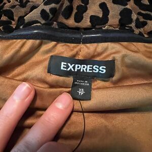 Add a bold and stylish piece to your wardrobe with this brand new Express Cheetah Print Dress in size XS. This dress features a cute cheetah print design and rubber around the neckline for a unique touch. It is lined for added comfort, making it perfect for any occasion.