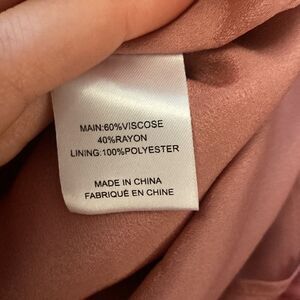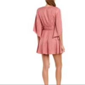 Color/pattern: pink Approximately 32in from shoulder to hem Measurement was taken from a size small and may vary slightly by size Model is 5ft 10in Design details: wrap style, bell-sleeves Self-tie closure Main: 60% viscose, 40% viscose rayon Lining: 96% polyester, 4% elastane Machine wash Imported.