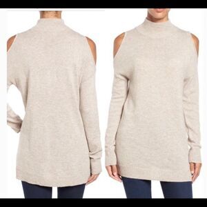 NWT-Halogen Alpaca & Wool Blend Mock Neck Cold Shoulder Cream Sweater