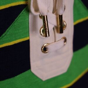 Y2K striped preppy bodycon mini dress from Juicy Couture. Bustier style with lace up accent. Lined.