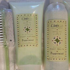 Enjoy this entire package from Kasy's Fine Foot Treatment, consisting of Peppermint Fine Foot treatment to pamper yourself or as a gift to someone else. This package of products will make your feet feel smooth and beautiful! A great gift for anyone, all year round!