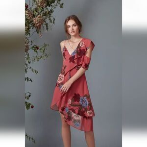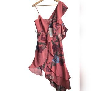 NWT Keepsake Floral Asymmetrical Chiffon Dress L