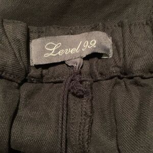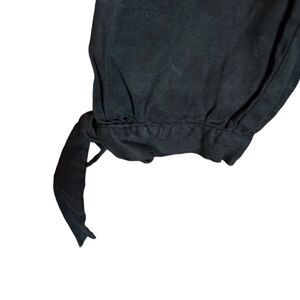 Add comfort and style to your wardrobe with these Level 99 Black Linen Blend Lounge Pants. Brand new with tags, these pants feature an elastic waist for easy wear and side slits that reach knee length, which can be tied at the bottom for a custom look. Made from a linen blend, these pants are perfect for lounging or casual outings.
