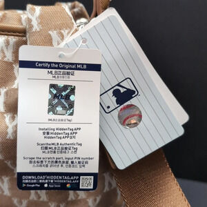 NWT,MLB New York Yankees Tan Jacquard Drawstring Monogramed Crossbody Bag.