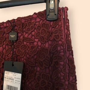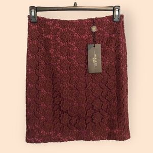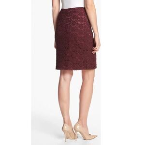 Max Mara weekend pencil skirt. The floral crocheted overlay adds lavish texture and dimension to this richly hued pencil skirt.