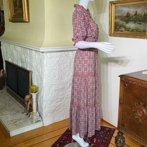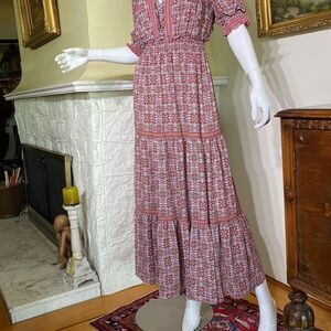 Brand new Max Studio boho style maxi dress desiring beautiful print, smocked waist, ruffles, elbow length sleeves and a very flattering fit.