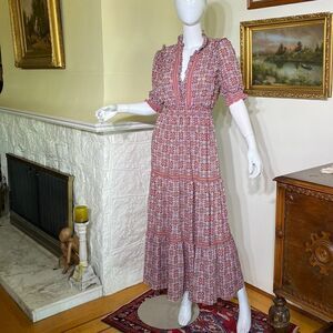 Brand new Max Studio boho style maxi dress desiring beautiful print, smocked waist, ruffles, elbow length sleeves and a very flattering fit.