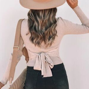 * This knit top is winter-ready and sure to become a wardrobe staple. With a high neckline, long sleeves, and an attached waist tie, it'll give you a flattering, slim fit. The ribbed knit fabric ensures it will keep you warm and cozy all season long.
