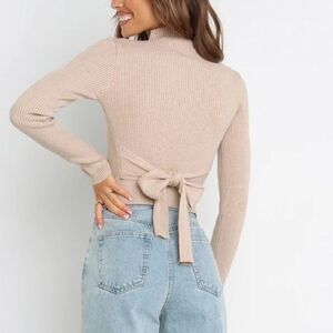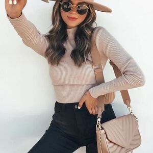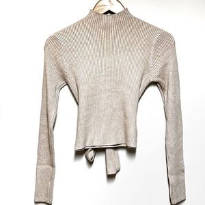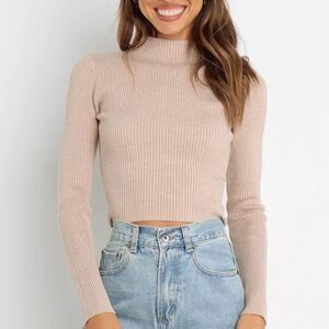 NWT Petal + Pup Beige Paige Crop Mock Neck Sweater Top SKN521 Womens M/L