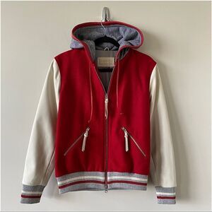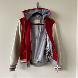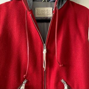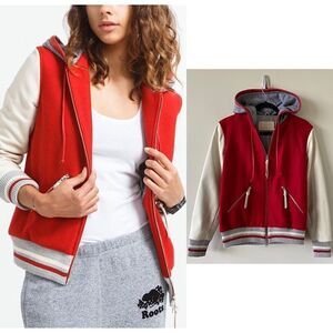 NWT-ROOTS ALEX VARSITY RED AND CREAM WOOL BLEND JACKET (SIZE:10)