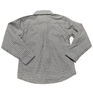 The Cinch Boys' Lead, Don't Follow Shirt is a long- sleeved, button-down shirt made from a soft and comfortable cotton blend. It features a geometric print in shades of blue, red, and white, and a classic fit.