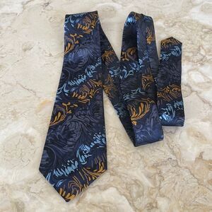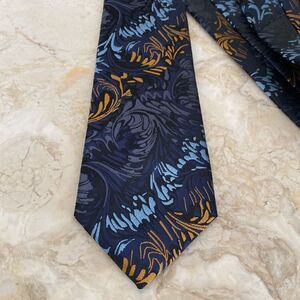 Brand new St. Lynn 100% silk tie in elegant dark and light blue and golden tan tones. Modern 3” width. A classy addition to your formal wardrobe.