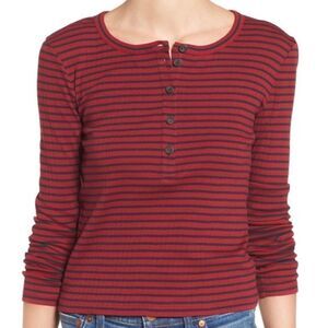 NWT-Striped Red & Navy Henley Tee (XXS)