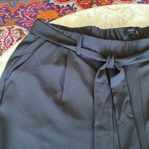 New with tags Tahari loose fitting pull on ankle length trousers, featuring an elasticized waist, belt loops and tie belt. Roomy in the thigh with a tapered leg, a cuffed hem and side pockets.