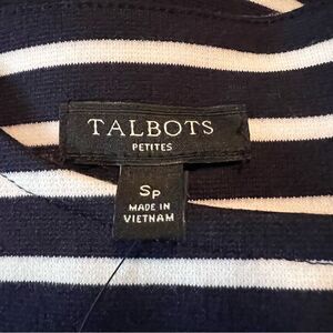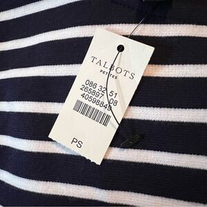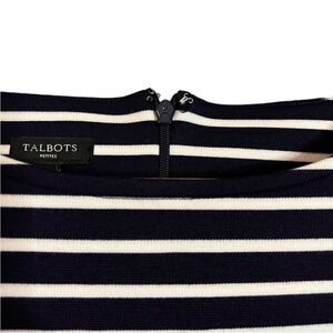 Step out in style with this brand new Talbots navy and white striped dress. The dress is a timeless and classic piece that's perfect for various occasions. With its nautical-inspired stripes, it brings a touch of sophistication to your wardrobe.