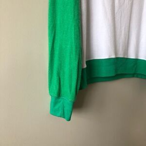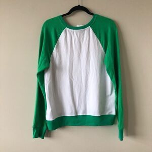 Retro styling and signature playfulness merge in an ultrasoft fleece sweater featuring bright, contrasting raglan sleeves.