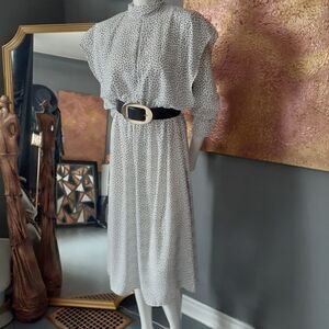 adorable and retro inspired micro ditty dot midi dress from Zara. NWT, never worn. flutter sleeve detail st shoulder with long sleeves underneath. buttons at cuffs and at back. this has big 1980s vibes! elastic waist with high collar. button closure wit keyhole detail at bust.