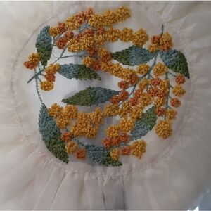 dainty and delicate semi sheer tulle circle handbag from Zara. perfect condition, brand new. intricate autumnal floral embroidery detail on face. large enough to fit all essentials. strap drop length 8"