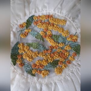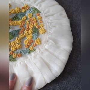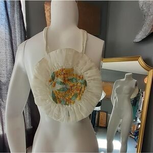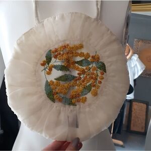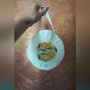 dainty and delicate semi sheer tulle circle handbag from Zara. perfect condition, brand new. intricate autumnal floral embroidery detail on face. large enough to fit all essentials. strap drop length 8"