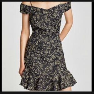 Super cute floral pattern. Sleeves sit just off shoulder.