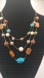 🌹NY mixed element (wood, stone, acrylic & shell) in a triple silver tone chain.