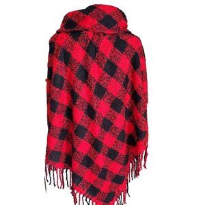 NYA Plaid Fringe Wrap Toggle Buttons Red Black Acrylic ONE SIZE