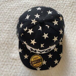 This NYC Adjustable Snapback Hat boasts a sleek black design accented with a striking white star pattern.