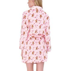 NYC UNDERGROUND HOLIDAY PRINT BELTED ROBE - O/S - Pink Gingerbread