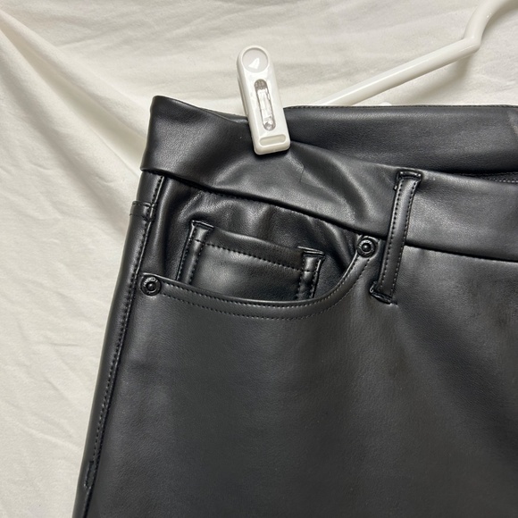 These NYDJ faux leather pants offer a sleek, modern silhouette and provide the look of genuine leather with added comfort and flexibility. The straight-leg cut and mid-rise waist make them versatile for both casual and dressy occasions. Pair them with a tucked-in blouse and heels for an evening out or with a cozy sweater and boots for a more relaxed look.