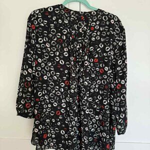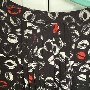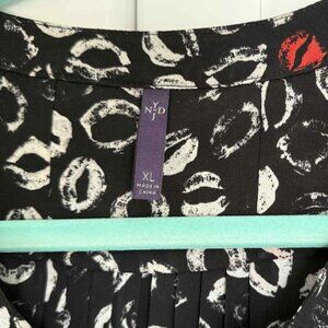 NYDJ Lip Print Blouse XL – Fun Black & Red Statement Top