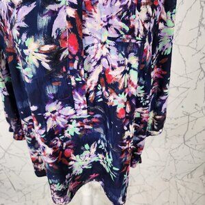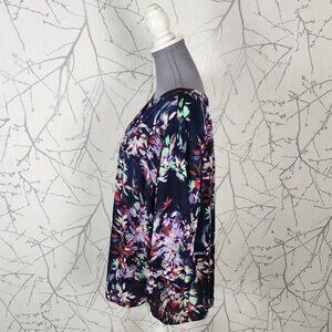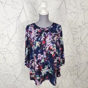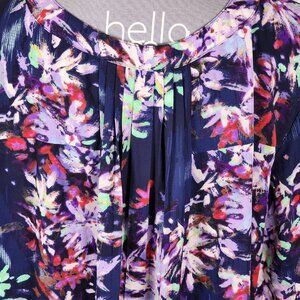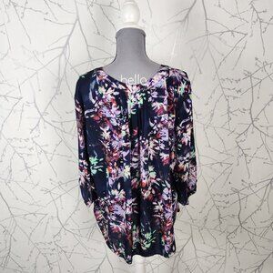 NYDJ Navy Brushstroke Floral Pintuck Popover Blouse