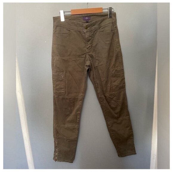 NYDJ Olive Skinny Ankle Pants Zipper Detail Women's Size 0 Stretch Fit