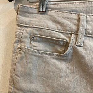 NYDJ Sz 8 Marilyn Straight Cream Coloured Jeans NWT. Small stain in back of leg as pictured. Comfort with the the technology for a perfect fit.
