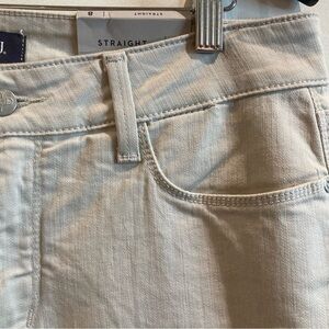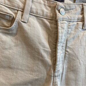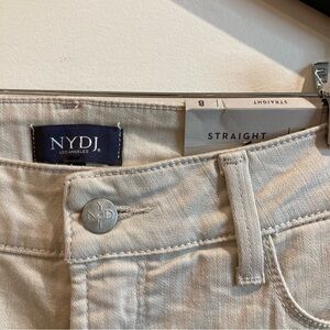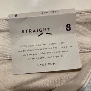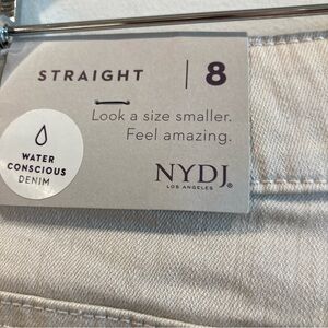 NYDJ Sz 8 Marilyn Straight Cream Coloured Jeans NWT. Small stain in back of leg as pictured. Comfort with the the technology for a perfect fit.