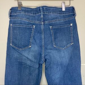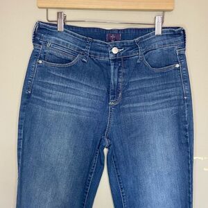 These NYDJ Blue Mid-Wash High-Rise Straight-Leg Jeans Size 12 are a perfect addition to any wardrobe!